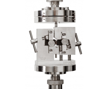 Оснастка EasyGrips™, EG-K-7014 предназначена для определения механических характеристик при сдвиге на образцах с V-образными надрезами (метод Iosipescu) в соответствии со стандартами ГОСТ 56799-2015 и ASTM D5379. Конструкция приспособления разработана для максимального удобства эксплуатации и обеспечения высокого качества испытаний. Благодаря двум направляющим со стопорами, исключается поворот подвижной каретки при испытаниях и несанкционированное ее снятие с базы при монтаже на испытательную машину. Дополнительные фиксирующим винты прижимают образец к оснастке, исключая ее перекос при установке и испытании. Комплект сменных клиновых вставок различного размера позволяет фиксировать образцы различной ширины. Оснастка EG-K-7014 универсальна и может быть использована с любой разрывной машиной независимо от производителя – для установки требуются две нажимных плиты диаметром не менее 150 мм.