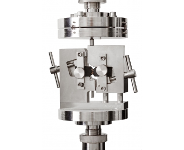 Оснастка оснащена двумя прецизионными направляющими с линейными подшипниками, исключающими поворот каретки, и, как следствие, обеспечивающими проведения испытаний без перегиба образца в плоскости. Все это, в свою очередь, гарантирует высокую точность и воспроизводимость результатов от испытаний к испытаниям.